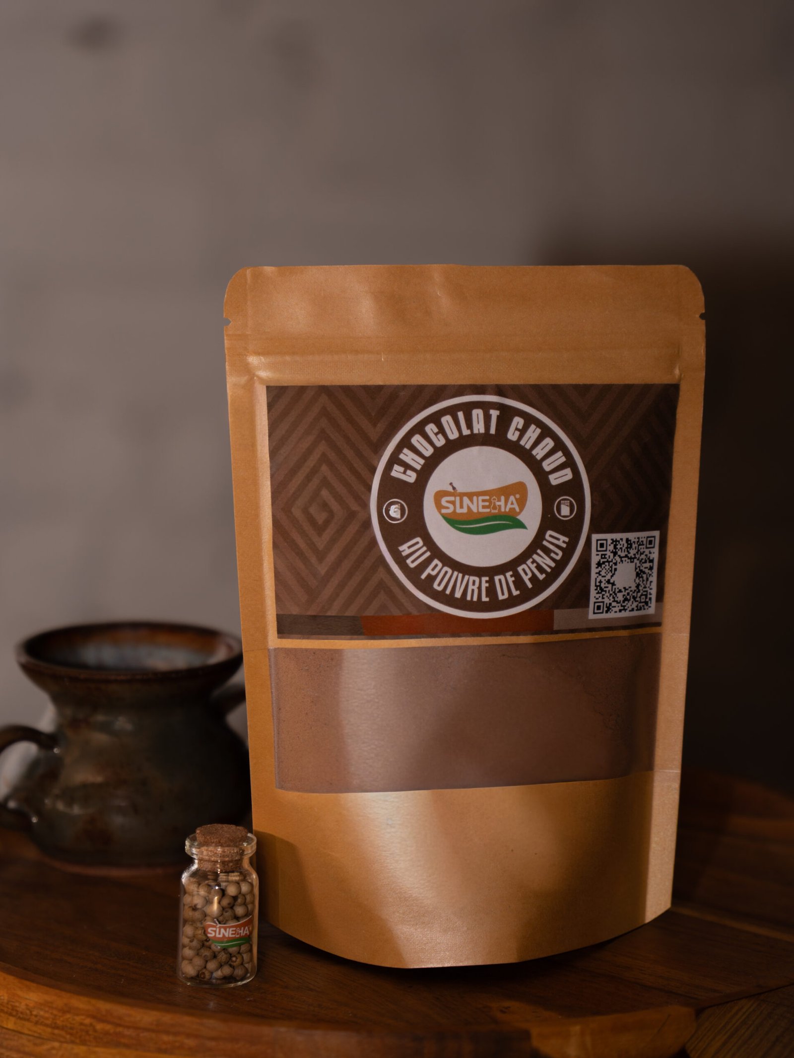 Plongez dans une tasse où se rencontrent cacao pur d’Afrique de l’Ouest et poivre blanc de Penja. Le chocolat délivre d’abord une profondeur douce, puis le poivre déploie ses notes boisées, ambrées et légèrement musquées : une chaleur ronde, persistante, jamais brûlante. Le résultat est un chocolat velouté, relevé juste ce qu’il faut, facile à apprécier en toute saison.