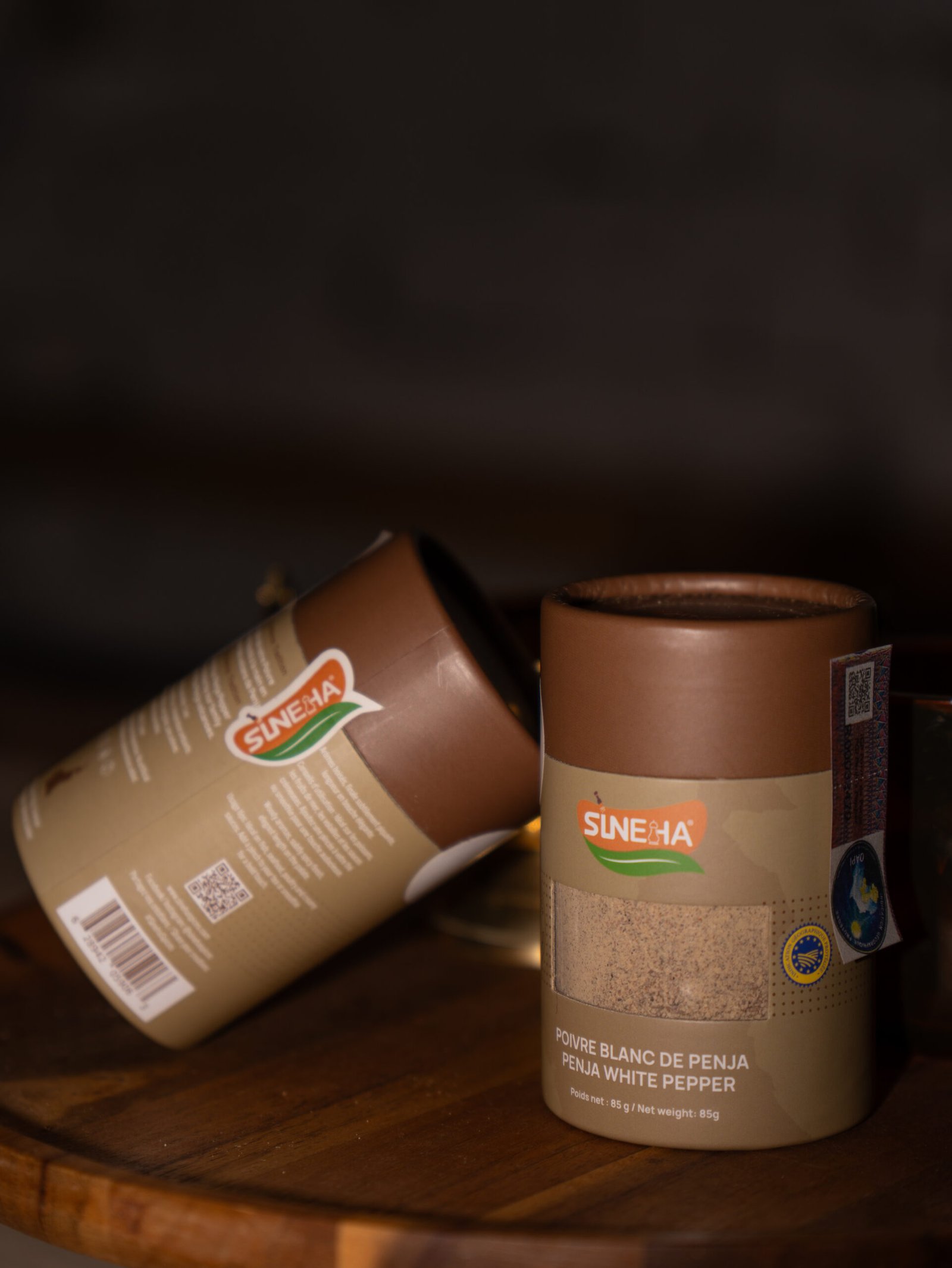 Véritable trésor culinaire, le Poivre Blanc de Penja est réputé comme l’un des meilleurs poivres au monde. Cultivé sur des sols volcaniques riches et fertiles dans la région de Penja, au Cameroun, ce poivre développe naturellement des arômes profonds, élégants et inimitables.